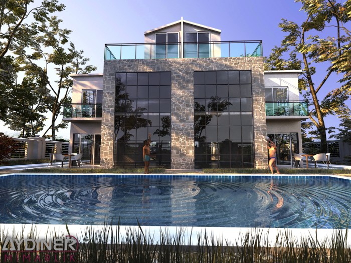 İzmir’de yapılacak olan Lüx villa sitesinden bir tane tip villanın tasarımıdır. İkiz villadır. Ortadaki doğal taş ile ikiye bölünmüştür. Proje ege mimarisi ile modern mimarinin birleşiminden ortaya çıkmıştır.