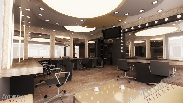 Konyaaltı’nın modern kuaförü İzz Kuaför’ün 3 boyutlu çizimleridir. 10 yıllık mevcut kuaför salonu yetersiz geldiği için yepyeni ve modern bir tasarımla ihtiyaçalara cevap verecek şekilde iç mimarisi yeniden tasarlandı. Kuaför salonu giriş bankosu, salon, bekleme alanı, profesyonel makyaj, ağda salonu, spa bölümü, mutfak ve tuvaletten oluşmaktadır. Projeleri çizildikten sonra 3 boyutlu sunumları ile birlikte malzeme ve imalat detayları hazırlandı. Mekanın dış cephesi kompozit kaplama ve cam giydirme yapıldı. İç mekanlarda tavanlarda alçıpan dekorlar ve gergi tavan uygulamaları yapıldı. Zeminde granit malzeme duvarlarda duvar kağıdı ve ahşap kaplamalar yapıldı. Bütün duvarlar ve tavanlar komple yıkılıp baştan yapılmıştır. Toplam inşaat süreci 45gün sürmüştür.